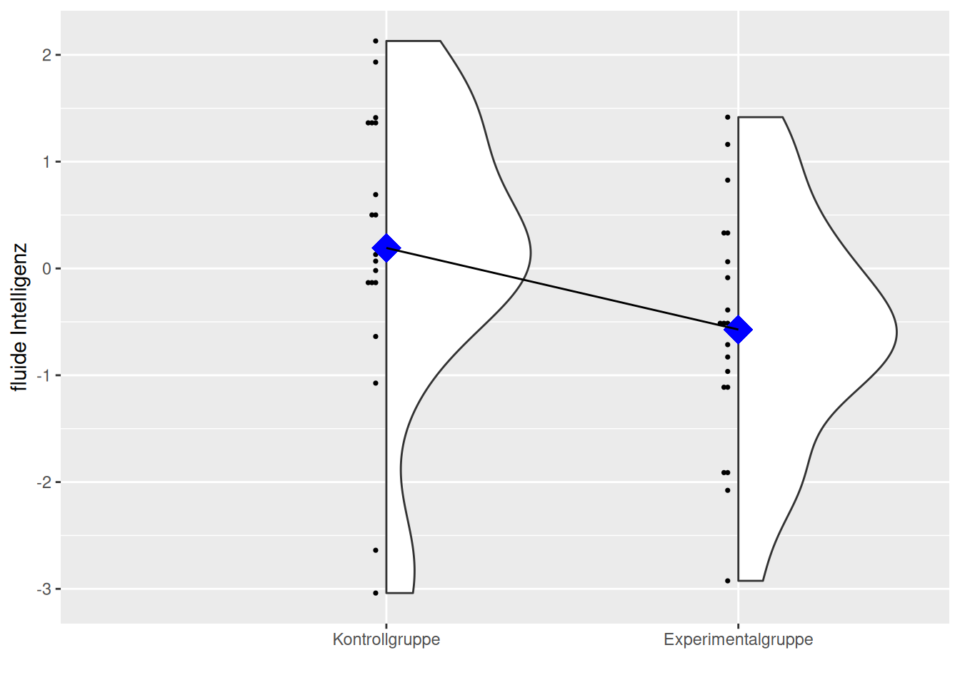 Sauer & Lustig (2023) untersuchten in einer Querschnittsstudie den Effekt des Wirkstoff Bringnixtin auf die fluide Intelligenz. Die Autoren nahmen an, dass der Wirkstoff den individuellen Wert der abhängigen Variable erhöhen würde.
